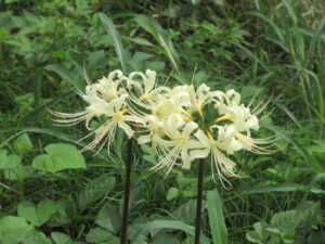 午後に向かった小出川沿いにはヒガンバナが美しく群生しているかと期待したのですが、赤いヒガンバナは遅かった・・でも白いヒガンバナはまだ見ごろ。周辺は稲刈りの始まった田園風景が広がり、のどかでした。